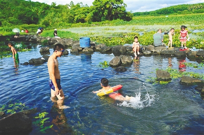 “久温塘,其实原名叫牛汼塘。海南闽语中牛汼塘就是牛在水中浸泡的意思。天气炎热,牛泡在水塘里自得其乐,不愿起来,这是一个非常有画面感的村名。”对海南民间文化颇有研究的许建康告诉记者,久温塘村冷泉的名字原先叫牛汼塘,到了20世纪60年代后,才改为久温塘村。