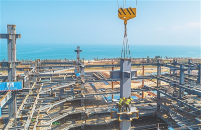 作为海口江东新区CBD首座地标工程,海南国际能源交易中心项目共17层,建成后将成为一个国际大宗商品交易平台及现代物流总部。目前,项目主体已完成总工程量的60%。