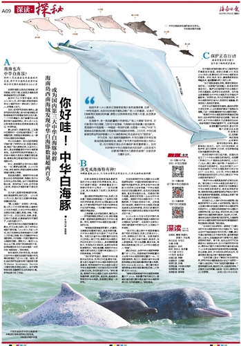 作为近岸、浅水海域的旗舰物种,中华白海豚近年来在海南岛西南海域被发现,刷新了学术界对该物种地理分布的认知,也对海南近海生态环境保护具有重要意义。如何科学做好中华白海豚的研究和保护,让琼岛成为这群海洋精灵长久栖息的家园?这亟须多方携手合作。