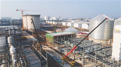 近日,洋浦经济开发区保税港区内,海南澳斯卡国际粮油项目施工现场一派忙碌景象。本报记者 陈元才 摄
