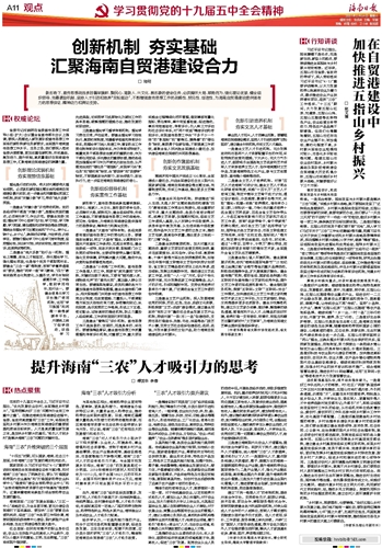 创新机制 夯实基础 汇聚海南自贸港建设合力