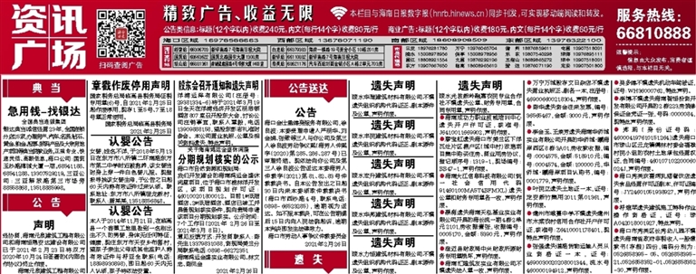 洋浦运泽有限公司(注册号:29381334-6)将于2021年3月19日全天在洋浦经济开发区丽思顿酒店807室召开股东大会,讨论公司注销事宜,联系人覃毅,电话13909888158,望股东彭志礼准时参会。本公司营业执照、公章及相关资料遗失,特此声明。