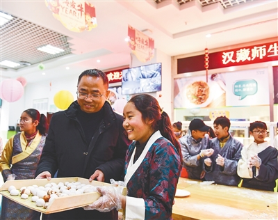 2月26日,师生在合肥市第三十五中学展示做好的汤圆。当日是元宵佳节,恰逢藏历新年的花灯节,安徽省合肥市第三十五中学开展2021年“汉藏师生齐欢笑,石榴园里闹元宵”活动,汉藏师生一起挂灯笼,猜灯谜,做汤圆,共度佳节。 新华社发