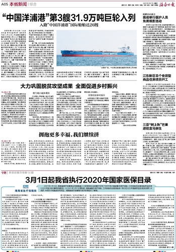 “中国洋浦港”第3艘31.9万吨巨轮入列