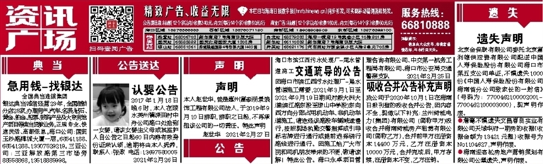 北京金保联有限公司委托北京富利雄供应链有限公司配送中国人寿保险股份有限公司海口市第五支公司单证,不慎遗失1000份《中国人寿保险股份有限公司海南省分公司致家长的一封信》(号码为:7700462100002001-7700462100003000),现声明作废。