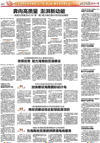 第002版:关注海南自由贸易港2021年(第一批)重点项目集中签约