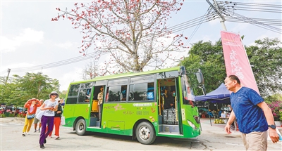 近日,随着木棉花开,昌江黎族自治县叉河镇排岸村迎来不少前来赏花的游客。