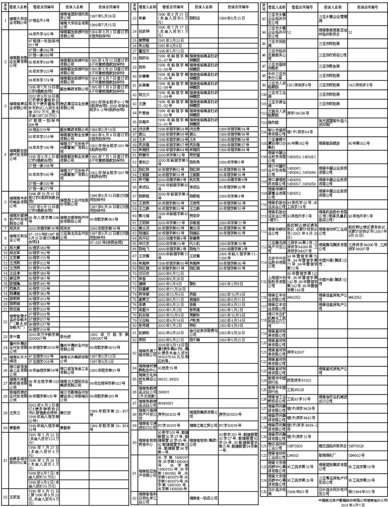 根据下列借款合同和担保合同,请下列各债权的借款人和相应担保人或借款人、担保人的承继人立即向中国信达资产管理股份有限公司海南省分公司履行还本付息义务(若借款人、担保人因各种原因发生更名、改制、歇业、吊销营业执照或者丧失民事主体资格等情形,请相关承债主体、清算主体代为履行义务或者承担清算责任)。
