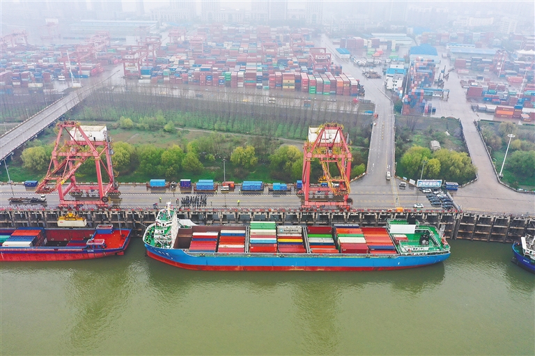 武汉:长江内河最大集装箱船首航