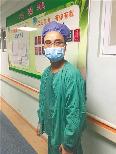 “你看上面那个大大的机头,那个手术机器在工作时会产生轻微的辐射,最忙的时候,介入医生从早上8点一直到次日凌晨都要在这台机器下进行手术。”2月10日那天,穿着绿色手术服,戴着手术帽,坐在海口市医院住院部一楼导管室外,透过玻璃窗望着自己长年累月相伴的手术机器,李强对记者说。