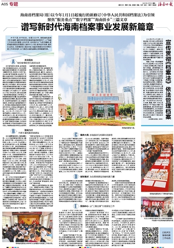 海南省档案局(馆)以今年1月1日起施行的新修订《中华人民共和国档案法》为引领 聚焦“服务重点”“数字档案”“海南侨乡”三篇文章~~~
