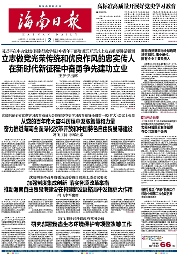 从党的百年伟大奋斗历程中汲取智慧和力量 奋力推进海南全面深化改革开放和中国特色自由贸易港建设