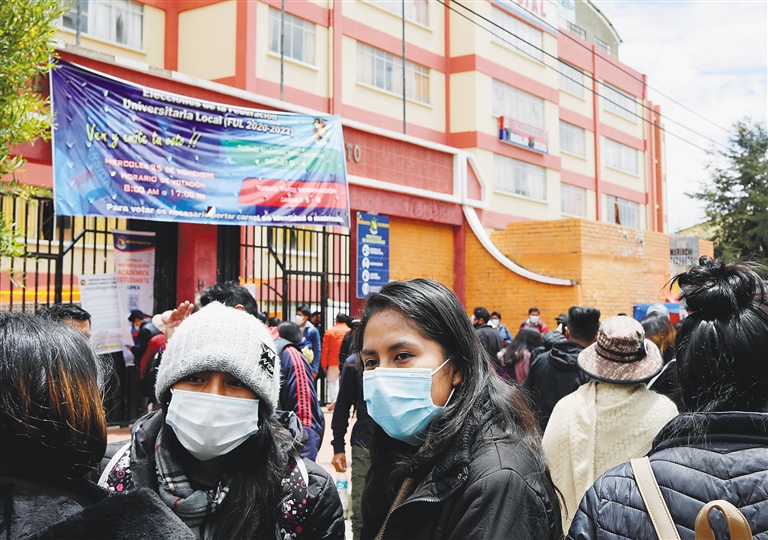 3月2日,学生聚集在玻利维亚埃尔阿尔托市发生事故的大学外。