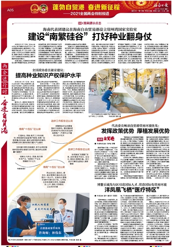 | 海南日报 蓬勃自贸港 奋进新征程——2021全国两会特别报道 005 2021-03-081 2021年03月08日 星期一 |