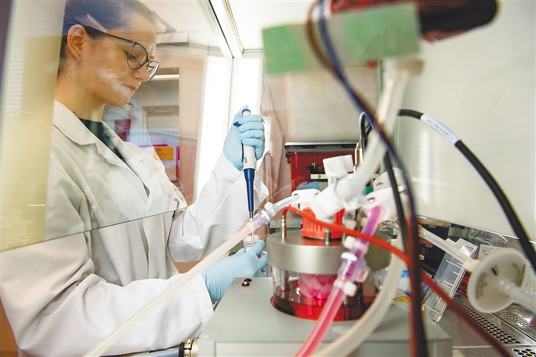 这张未标明拍摄日期与地点的照片显示的是芬兰研究人员将鼻喷式新冠疫苗置于无菌层流柜中进行进一步处理。
