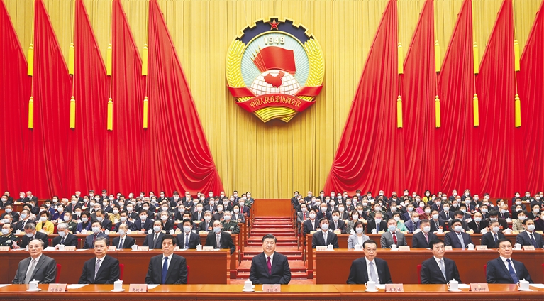 汪洋在讲话中说,这次会议聚焦“十四五”、共话新蓝图、汇聚正能量,是一次民主、团结、求实、奋进的大会。中共中央总书记、国家主席、中央军委主席习近平等党和国家领导同志出席会议,与委员共商国是。全体委员深入讨论政府工作报告、“十四五”规划纲要草案和其他报告,认真审议全国政协常委会工作报告等文件,坚持建言资政和凝聚共识双向发力,取得积极成果,充分体现了广大委员为国履职、为民尽责的担当精神,展现了人民政协作为专门协商机构的优势作用。