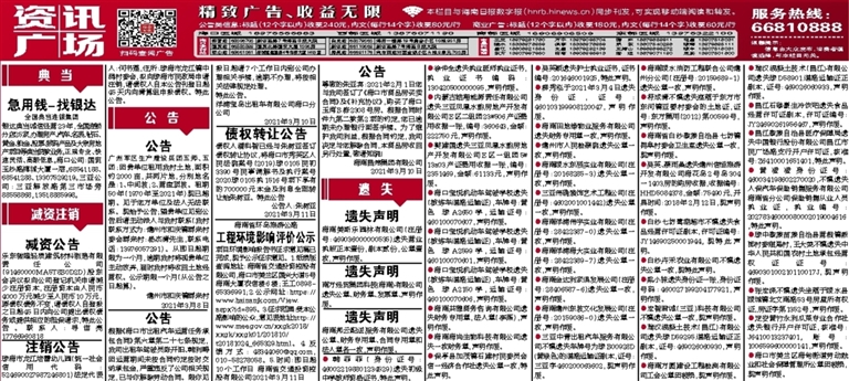●柳秀泓于2021年3月4日遗失身份证,证号:460103199908120047,声明作废。