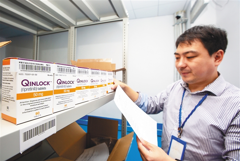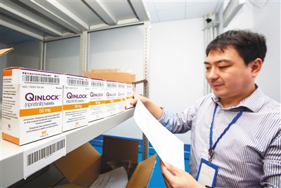 在博鳌乐城国际医疗旅游先行区公共保税仓库内,工作人员查看登记进口药品。