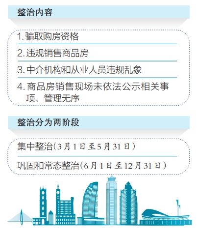 据悉,海口市今年房地产市场专项整治行动分为集中整治(3月1日至5月31日)、巩固和常态整治(6月1日至12月31日)两个阶段,先由各房地产企业进行自查自改。海口市住建局联合各执法部门成立6个排查整治工作组,重点对在建、在售以及群众投诉举报较多的商品住宅项目违法违规行为开展排查整治。