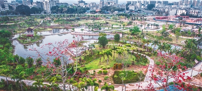3月10日,儋州市那大镇新建的城西区西湖公园成为市民休闲健身的好去处。近年来,儋州市园林部门先后建成了东湖、北湖、中湖和西湖公园。 特约记者 吴文生 摄