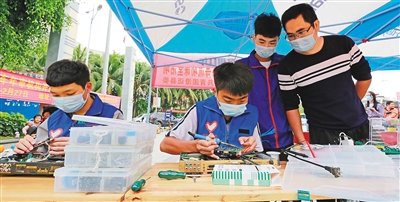 “我们这些志愿者都是参加过省级甚至是世界级技能选拔赛的选手,技术过硬,也非常热心。”省技师学院团委副书记潘蕾介绍,该校共有8个系部,开设电子、计算机、美容美发等专业,专注培养技术型人才,平时学校定期开展进社区或科技下乡志愿服务活动,帮助学生们多接触社会、多动手实践,在服务民生的同时,提升学生技能水平。