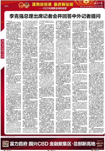 第005版:蓬勃自贸港 奋进新征程——2021全国两会特别报道