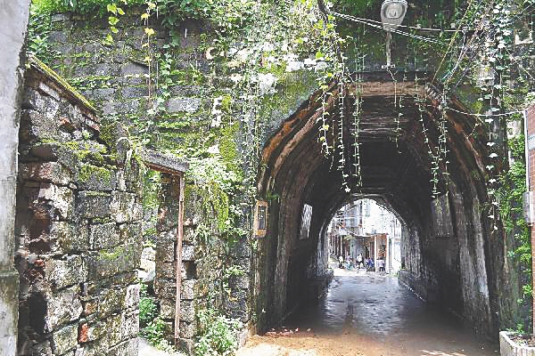 常说“大隐隐于市”,府城的历史遗迹可以称得上是大隐中的大隐,琼台福地、琼台书院、三圣宫、鼓楼等建筑就隐藏在大路旁的小巷子里。走进这些小巷,柏油马路变成了青石板的街道,现世中的车马喧嚣似乎立即消失了,人们似乎穿越回了古代,而那些斑驳的墙体与茁壮生长的蕨类植物则准备了几代人的故事要倾诉。