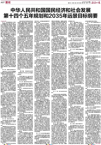 中华人民共和国国民经济和社会发展 第十四个五年规划和2035年远景目标纲要