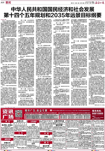 中华人民共和国国民经济和社会发展 第十四个五年规划和2035年远景目标纲要