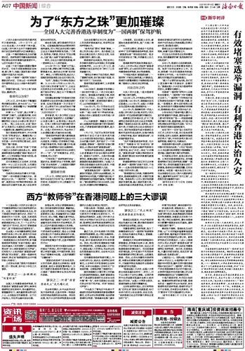 ~~~——全国人大完善香港选举制度为“一国两制”保驾护航