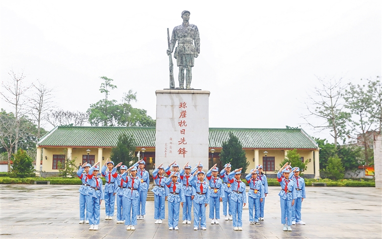 新 3月2日,在琼崖工农红军云龙改编旧址,一群小导游站在广场的雕像下。近年来,云龙镇中心小学推出“红志小导游”红色文明实践主题活动,让学生们身体力行做红色文化的传播者。 本报记者 张茂 摄