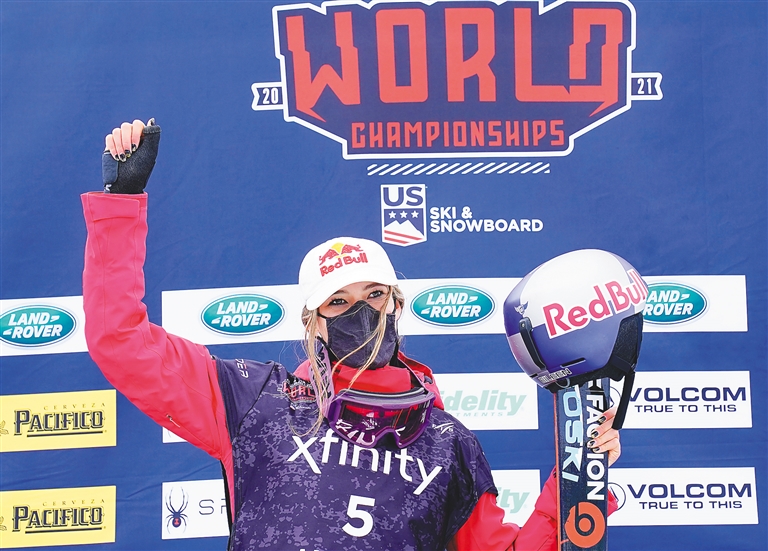 带伤出战的谷爱凌12日在U型场地项目上以93分高分摘金,创造了属于中国选手的自由式滑雪世锦赛首冠。