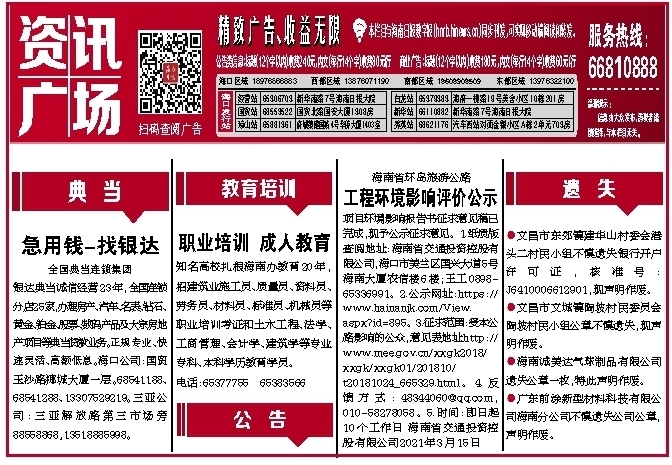 银达典当诚信经营23年,全国连锁分店25家,办理房产、汽车、名表、钻石、黄金、铂金、股票、数码产品及大宗房地产项目等典当贷款业务。正规专业、快速灵活、高额低息。海口公司:国贸玉沙路椰城大厦一层。68541188、68541288、13307529219。三亚公司:三亚解放路第三市场旁 88558868,13518885998。