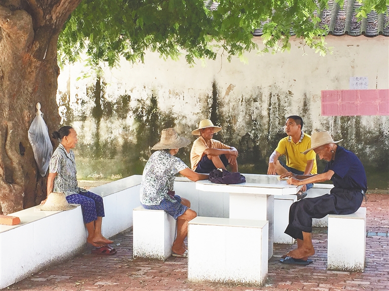 付马话是海南使用人口最少、最小众的濒危方言。近日,76岁的付马村村民吉保堂,带着孙子在村里的凉亭中休息。他告诉海南日报记者,村里交流主要还是靠付马话,村里的小孩也都基本会说。