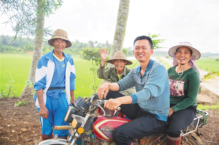 “公司已在海南股权交易中心挂牌,未来将以‘资本+企业+合作社+农户’的模式,带动村民发展致富。”该公司总经理陈斌指着村里150亩的稻田说,“就这一块地,村民能赚到4份收入:种水稻、种泰国金椰、养小龙虾还有租金分红,村民变股东后,还可以拿到合作社的分红。经过多方努力,目前已经有100多名村民入股!”