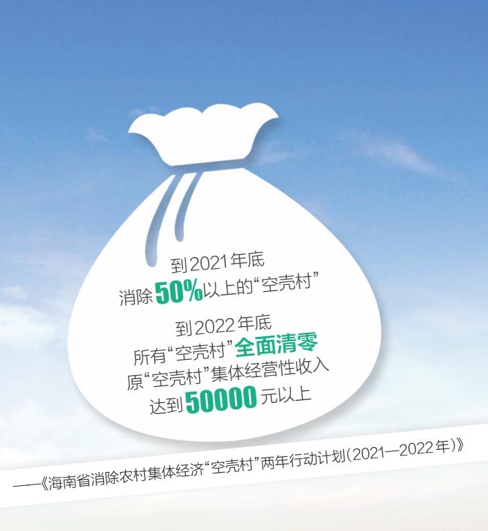 近日省委办公厅、省政府办公厅印发了《海南省消除农村集体经济“空壳村”两年行动计划(2021-2022 年)》(以下简称《行动计划》),进一步优化集体经济发展模式,其中明确指出,我省将通过大力开展协作帮扶、实行台账管理、探索村企联合抱团发展、积极发展“飞地经济”、加大政策资金扶持力度等五项举措,到2022年底,全面消除我省220个行政村集体经济“空壳村”,持续稳定增收能力明显增强。
