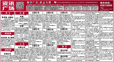 ●郑文菁于2020年9月遗失身份证至今,未补办,证号:46010219861028032X,特此声明。