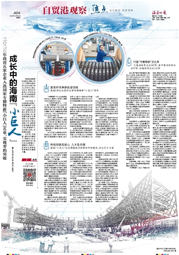 但客观来讲,从全国来看,我省专精特新“小巨人”企业数量还不多,分布也不均衡,如目前我省5家“小巨人”企业就全部位于海口,其他市县还未实现零的突破。