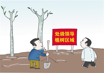 植树造林,人人有责。领导干部植树造林,能够起到表率作用,吸引更多群众参与。而一张“处级领导植树区域”的牌子,却将干部与群众隔离开来,使得植树活动变了味。“分区植树”看似对植树范围进行分区,实质是对人的区别对待,折射出的是特权思想。