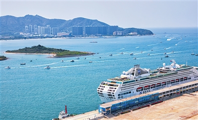 3月18日,一艘艘游艇驶过三亚凤凰岛国际邮轮港。