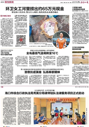 ~~~事发海口美舍河,警方介入调查,钱的真伪及来源待确认