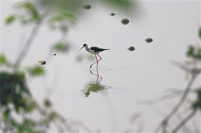 此次在海口东寨港红树林自然保护区(以下简称东寨港保护区),边缘就拍摄到了黑翅长脚鹬、白鹭等鸟类。在他的照片里,黑翅长脚鹬鸟如其名,双脚修长,翅膀呈现黑色。画面中,黑翅长脚鹬细而长的双脚,支撑着有着完美流线的身体,体态绰约。尖而长的喙,是它生来便有且赖以生存的“武器”,一双专注的眼睛,似乎在紧盯水里的动态,随时准备着扎进水里捕食。