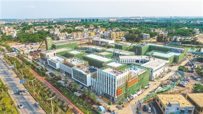 3月16日,俯瞰主体结构已经全面封顶的海口江东新区1.5级企业港(一期)项目。