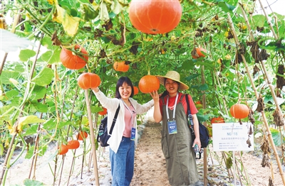 三月二十三日,参加2021中国种子大会暨南繁硅谷论坛的专家学者到南繁基地了解新技术新品种。 本报记者 武威 摄