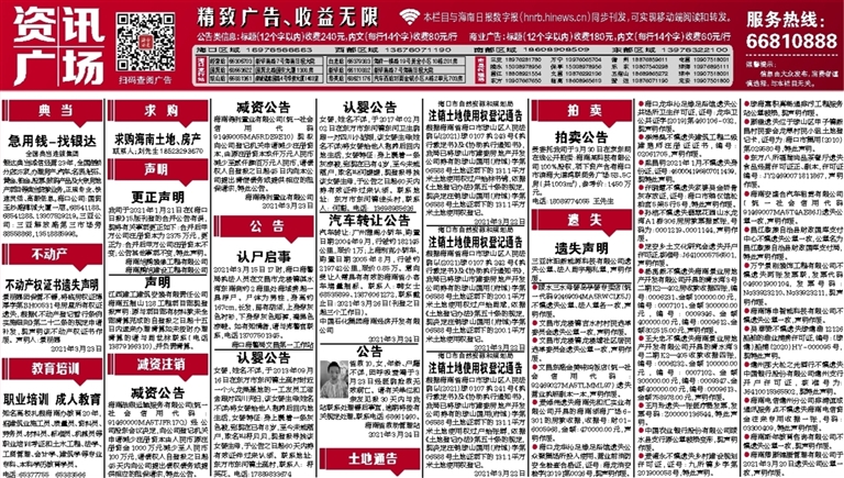 汽车转让:广州雅阁小轿车,购置日期2004年9月,行驶约182145公里,底价1万;上海别克小轿车,购置日期2005年8月,行驶约219742公里,底价0.85万。意向受让人需具有有效的海南省小客车增量指标。联系人:韩女士68535899、13876061272,联系截止日:2021年3月26日(刊登之日起三个工作日)。