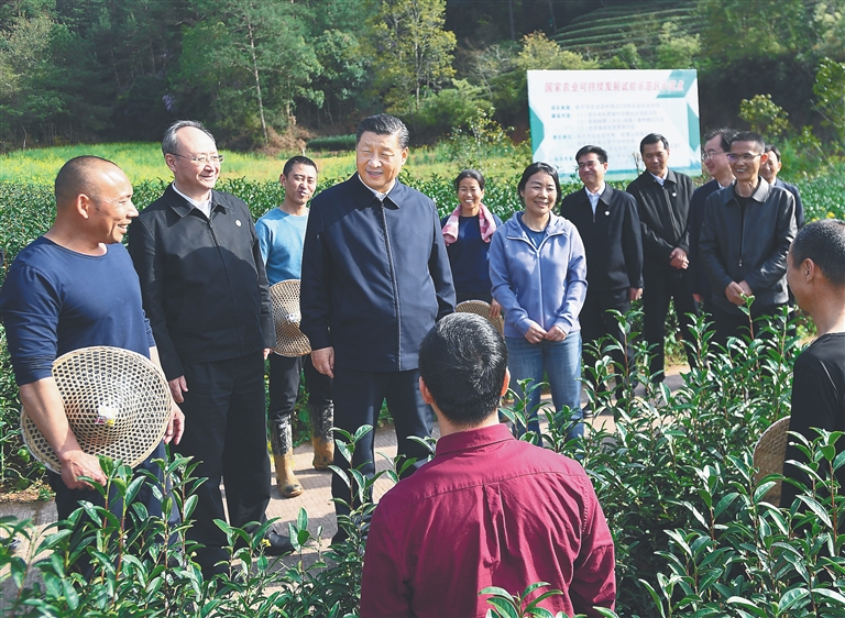 仲春时节,八闽大地一派勃勃生机。3月22日至25日,习近平在福建省委书记尹力、省长王宁陪同下,先后来到南平、三明、福州等地,深入国家公园、生态茶园、文物保护单位、医院、农村、企业、学校等,就贯彻党的十九届五中全会精神、推动“十四五”开好局起好步、统筹推进常态化疫情防控和经济社会发展等进行调研。