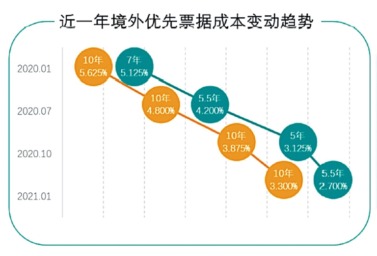 2021年1月发行的5亿美元5.5年期票据和7亿美元10年期票据的利率更是分别为2.7%、3.3%,创民营房企发债融资成本之新低。在行业整体融资趋紧的背景下,碧桂园以超低成本发债融资,充分显示集团稳健的财务盘面在资本市场上拥有的竞争实力。
