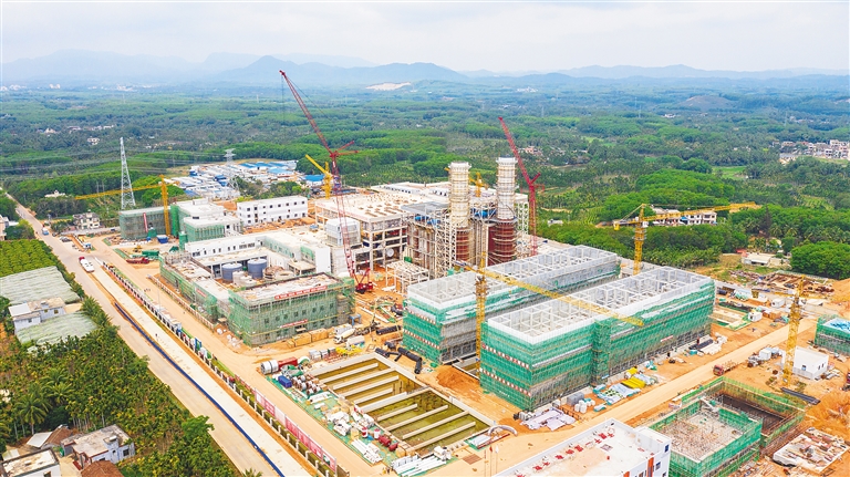 3月24日,俯瞰位于万宁市北大镇的大唐万宁燃气发电厂项目。目前,该项目正在加快建设中,1号机组已进入安装阶段,预计今年6月下旬将进入试运行阶段。