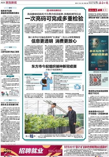 海南健康码依托平台整合疫苗接种、核酸检测等信息~~~