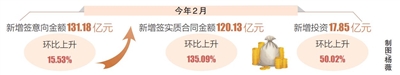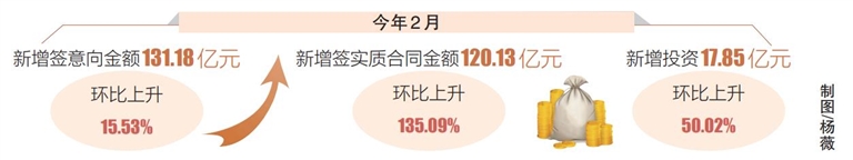 本报海口3月28日讯 (记者张期望)新增签意向金额131.18亿元,环比上升15.53%;新增签实质合同金额120.13亿元,环比上升135.09%;新增投资17.85亿元,环比上升50.02%……这组“亮眼”数据,是海口今年2月份的招商成绩。今年以来,海口围绕旅游业、现代服务业、高新技术产业三大主导产业,多部门通力合作,“点对点”发力精准招商,新的一年招商工作实现“开门红”。
